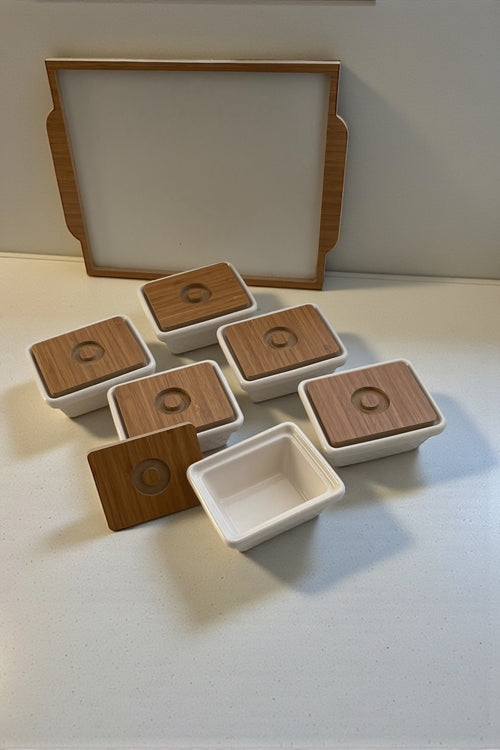 13 Parça Bambu Kapaklı Seramik Kaseli Kahvaltı Seti -120 ML