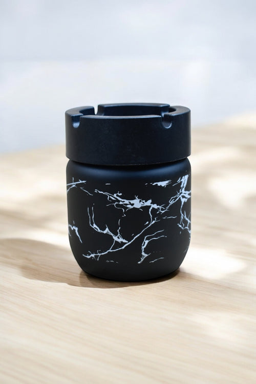 Cam Küllük/ Kül Tablası Mermer Desenli-Siyah- 10,5 Cm
